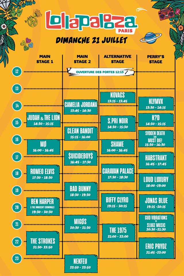 Jour 2 : NEKFEU / BEN HARPER / ROMEO ELVIS / CARAVAN PALACE / THE STROKES / SUICIDEBOYS ($uicideboy$) /CAMELIA JORDANA / MIGOS / BAD BUNNY / SHAME /S PRI NOIR / THE 1975 / ERIC PRYDZ / KOVACS /JONAS BLUE / CLEAN BANDIT / BIFFY CLYRO /KLYMVX / LOUD LUXURY / HABSTRAKT