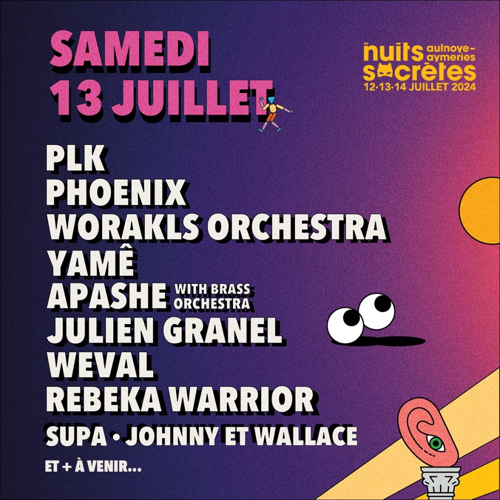 Que vous soyez un fan de rock indépendant, de musiques électroniques avant-gardistes, de hip-hop percutant ou de mélodies folk envoûtantes, Les Nuits Secrètes 2024 ont tout prévu. Les festivaliers auront la chance de découvrir des artistes de renommée mondiale, Shaka Ponk, Phoenix, PLK, Louise Attaque, Naâman, Julien Granel, etc. ainsi que des talents locaux prometteurs, créant ainsi une expérience musicale aussi éclectique que captivante.